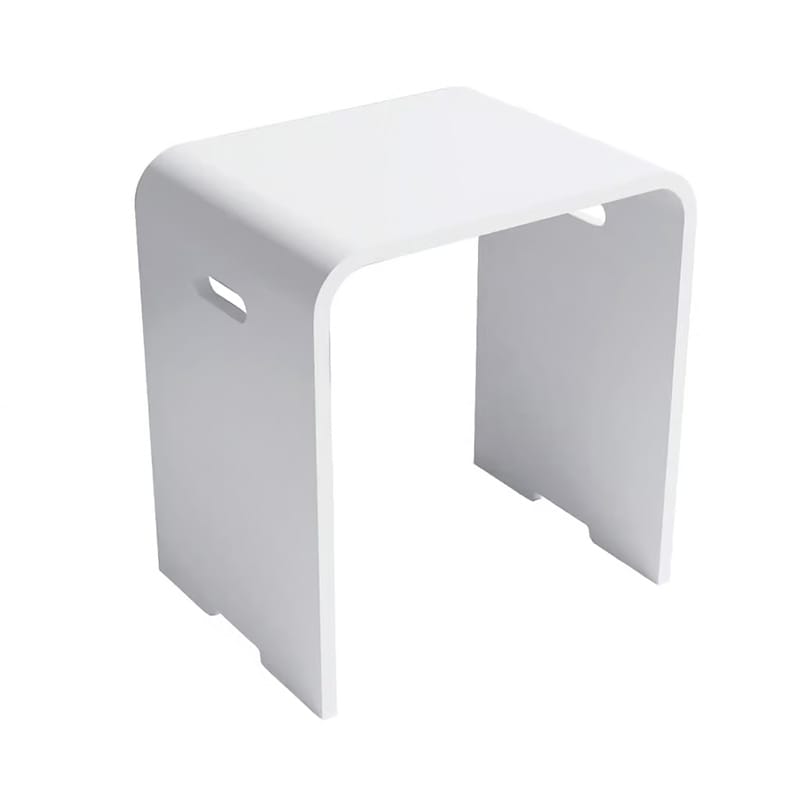 Cube är en stilren duschpall i vit matt. Duschpallen är tillverkad i det slitstarka materialet Solid Surface, som gör den extra motståndskraftig mot repor och fläckar. Använd pallen i duschen, framför badrumsspegeln eller i hemmets övriga rum - den minimalistiska designen gör att den passar in överallt.