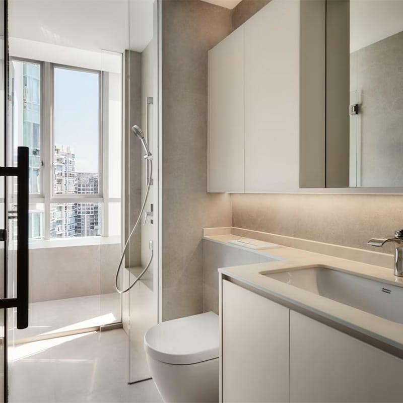 Dekton är ett slitstarkt och lättskött material som passar väl för användning i badrumsmiljöer. Dess mångsidighet gör att det passar för både badrumsmöbler, bänkskivor samt vägg- och golvbeklädnad.