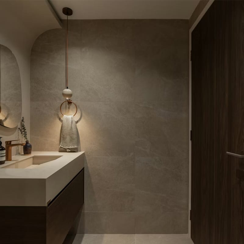 Dekton är ett slitstarkt och lättskött material som lämpar sig perfekt för badrumsmiljöer. Det mångsidiga materialet kan användas till badrumsmöbler, bänkskivor samt vägg- och golvbeklädnad.