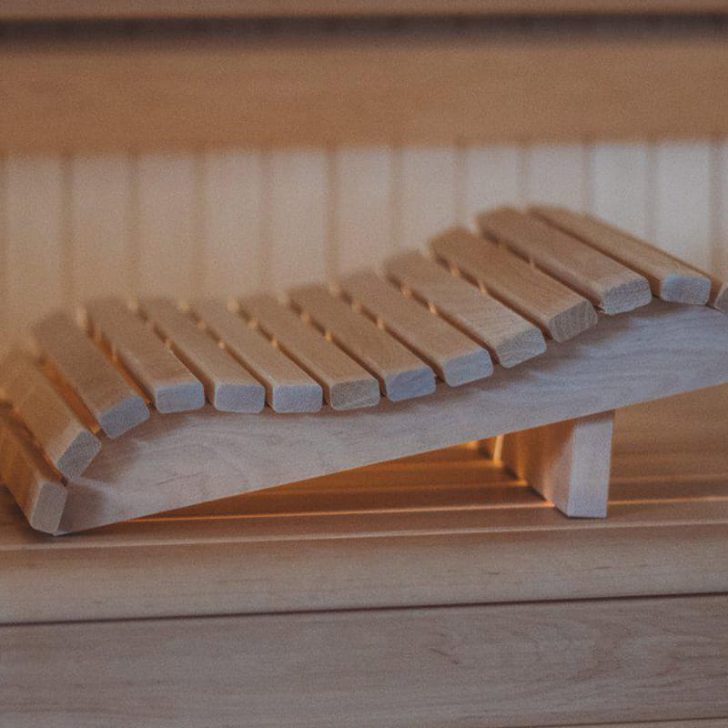 En stilren och funktionell kudde för bastun, utformad med smala ribbor som ger både stöd och komfort för nacke och huvud.