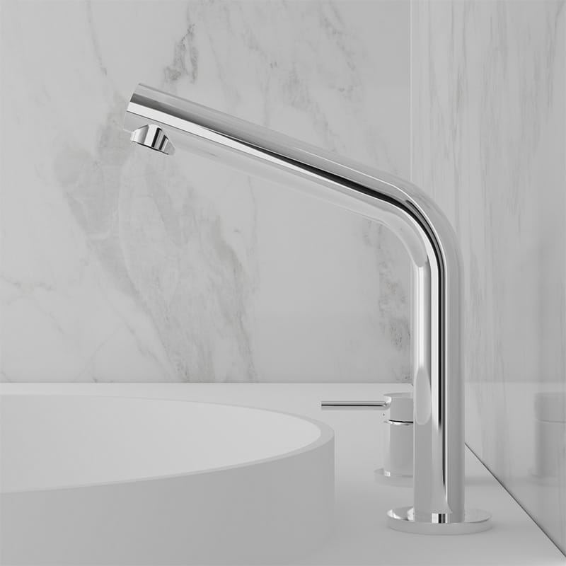 - Möjlighet att ställa in pipens vridbarhet, vilket förenklar rengöring av tvättställ. Pipen kan även låsas till 0°